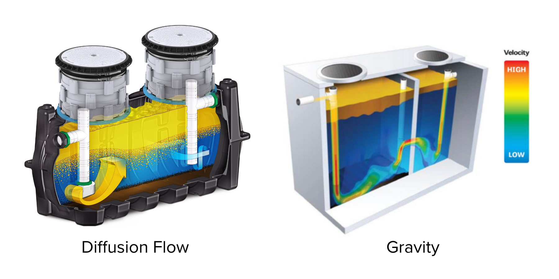 Properly designed hydromechanical interceptors don’t depend on long retention times. Grease naturally wants to float; it separates quickly when designed flow patterns allow it. The captured grease is then removed by pumping contractors and transported to treatment plants — where retention time does matter.